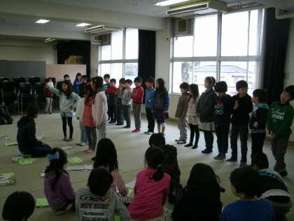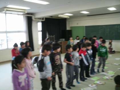 5時間目は、大会議室に移動して練習をしました。大会議室を講堂の舞台に見立てて、立ち位置の確認、舞台への出入りの仕方などを中心に行いました。練習中は、笑いあり、迫真の演技ありと、メリハリのある練習ができました。