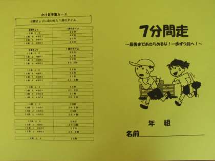 持久走カードを配付し、1周あたり何秒で走れば自分の目標が達成できるか分かるようにしています。