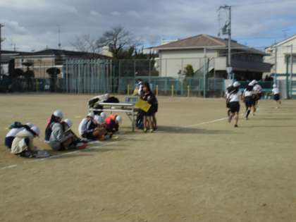 体育の学習では持久走がスタートしました。7分間走をしています。