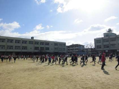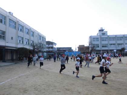 冬場の運動不足を補い、健康な体作りを目指して、12月から『縄跳びチャレンジ』『縄跳びビンゴ』『縄跳びギネス』に全校で取り組んでいきました。そして、今週から最終クールの『全校駆け足』が始まりました。