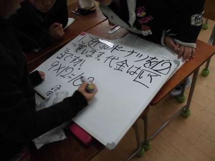 算数の授業では、「数のかん係を考えて、代金をもとめよう。」というめあてにチャレンジしました!長い文章題から必要となる数だけを見つけ、問題を簡単にして計算しようというものです。