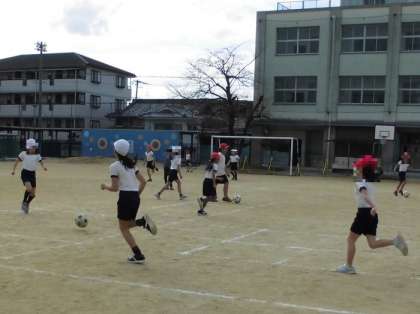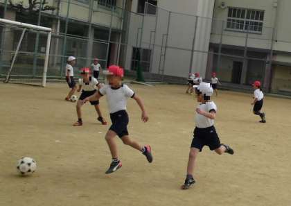 今日はボールの取り合いと、蹴り方の練習について学習しました。三年生にはサッカーを習っている子が多く、大活躍です!サッカーを習っていない子についても一生懸命ボールを追い、負けじと取り組むことができました!