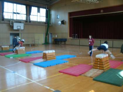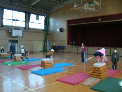 今日は、体育で学習している跳び箱運動の最終日。子ども達がどれくらい跳べるようになったかを、一人一人見ていきました。するとどうでしょう。目標としていた開脚跳び3段を見事全員がクリアーすることができました。びっくりです。中には、5段を平気に跳ぶ子もいてまたびっくり。さらには、担任が間近で見守る中、5段の閉脚跳びを成功させる子もいてまたまたびっくり。