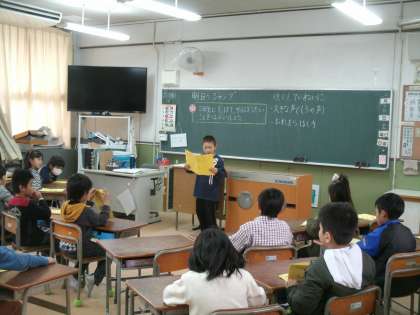 とうとう最後の学習参観の日がやってきました。朝から「先生、緊張する〜!」とそわそわ気味の子ども達。発表に向けて、担任からアドバイスを受け、何度も読む練習をしてきました。その練習の成果は?