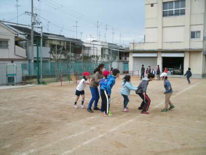 本校では、異学年の子ども達が交流を深めて互いを認め合い、協力し合う態度を育むことをめあてに、木曜日の全校集会をはじめ、全校遠足などでもなかよし班を活用しています。この『なかよし班遊び』も、そのめあて達成に向けた取り組みの一つです。