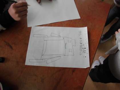 2組ではロボット作りに向けて「こんなロボットを作りたい!」という図案を考えました!どんな工夫をしてみようか、足が動くようにするにはどうすればいいのかなど、じっくり考えて図案を作成しました!