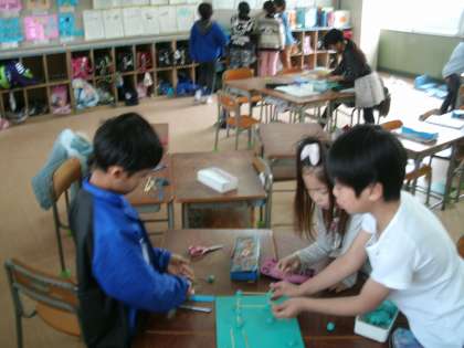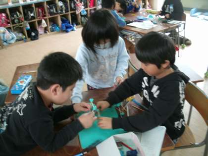 箱を見たり、触ったりするだけではなく、このように実際に自分達で箱を作るという算数的活動を通して、学習のねらいに迫り、学習内容の理解を深めていきました。
