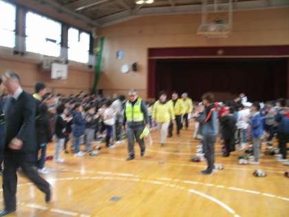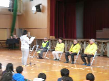 暑い日も、寒い日も、風の強い日も、雨の降る日も、いつも子ども達の登下校の安全を見守ってくださっている見守り隊のみなさんに感謝の気持ちを伝えようと、今日、『見守り隊ありがとう集会』を行いました。