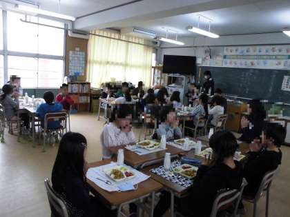 今日の給食は、卒業給食でした!各クラスに4人の6年生が来てくれて、一緒に給食を食べました!