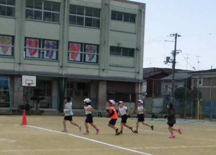 まずはじめに運動場を8周走りました!3年生にとって8周はとても長い距離でしたが、一生懸命走ることができました!