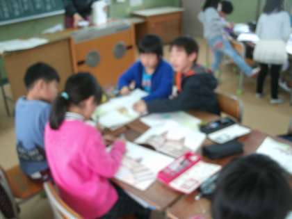 この前は、絵の下描きの様子をお伝えしました。今日は、その下描きに色をぬったり、絵が完成した子はその裏に本文を書いたりしました。本文は、自分が描いた絵と違う場面の文を書かなくてはいけないのでややこしかったですが、もう少しで紙芝居の完成です。楽しい紙芝居になるように、がんばります。
