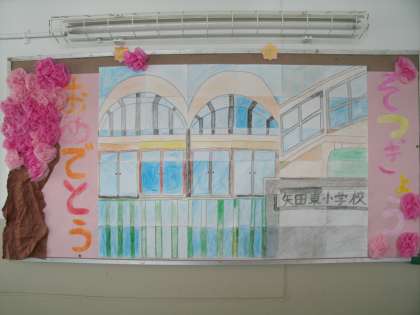 前回は、『卒業おめでとう給食』についてお伝えしました。パート2では、2階にある学年掲示板の作品についてお伝えします。