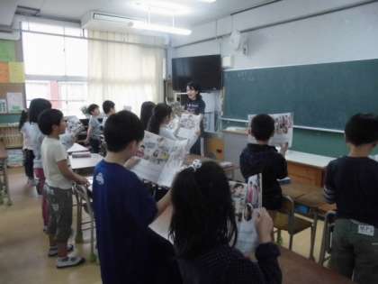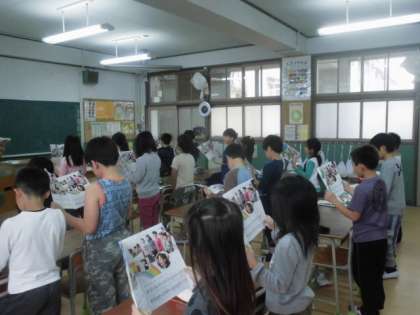 (どこのクラスからかな?)と思い、近づいていくと、3年1組からでした。『友だち』という歌を、5時間目の音楽の授業で学習しているところでした。今日のめあては、「V(ブレス:息つぎ)に気を付ける」と、「大切な友達への思いをこめて歌う」でした。そのめあてを達成しようと、担任の先生のアドバイスを守り、みんな美しい声で歌っていました。