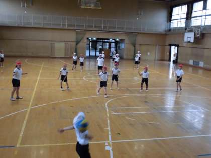 ドッチボールでは、女の子にも投げられるようにみんなで楽しく体育を行えました。