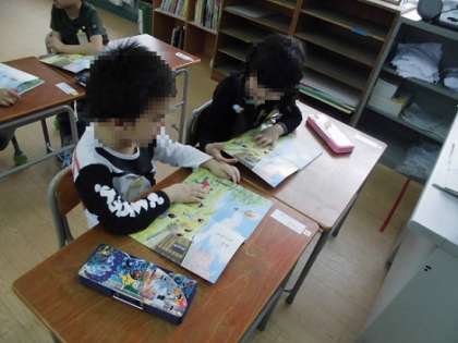 国語の学習では、教科書の絵を見て絵に描いてあるものについて発表しました。