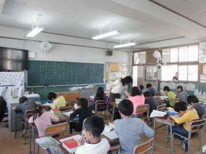 今日は学習参観日。国語辞典を使って言葉を調べる勉強を見ていただきました。辞典の使い方は、教科書を使って前の時間に学習したとはいえ、数多くの言葉の中から見つけるので大変です。「どこやろ〜?ないな〜。」見ていると、辞典に慣れ親しんでいないので、探したい言葉を通り過ぎたり、まだまだ先のページに載っていたり。苦労した末に見つけた時は、「あっ、あった!」と思わず喜びの声が。一人一人が、一生懸命辞典と向き合った授業となりました。
