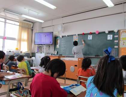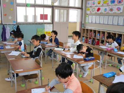 厳しい先生のチェックのもと、今日もひらがなの練習に一生懸命な1年生です!