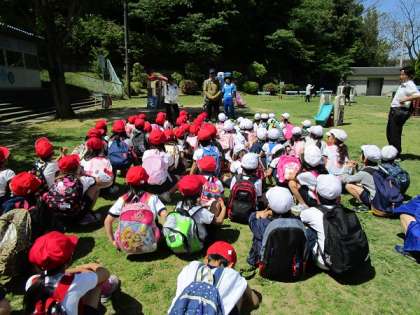 今日は待ちに待った遠足の日です!1・2年生合同で玉手山公園に行きました!