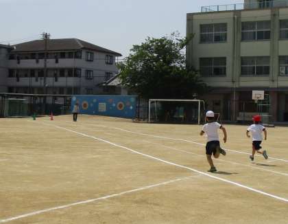 これまでに何度か50メートル走の練習をしている子どもたち。「めっちゃがんばる!」と気合十分でした!腕を大きく振って、一生懸命走りました!