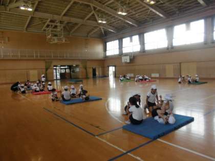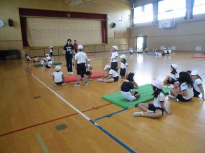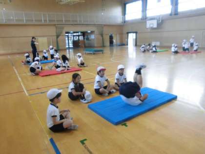 今日の体育では、後転の練習をしました。前転と違い、なかなかスムーズに回ることができず、苦手とする子が多いです。