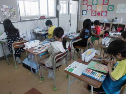 前回は、1組の子ども達が取り組んだ似顔絵づくりをレポートしました。今回は、2組の子ども達が取り組んでいる様子をレポートします。
