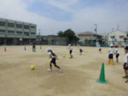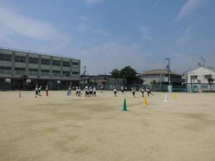 だんだん暑くなってきました。特に今日は、太陽の照っているところに出ると、それだけで汗ばんできました。その中、運動場で体育を行いました。