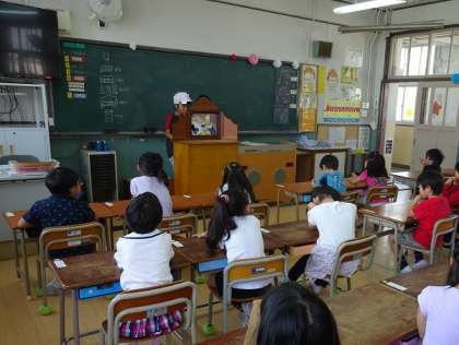 今日は1年生の教室に読み聞かせに来てくれました!「不思議な箱が開くよ。」という図書委員会の子どもたちの声を聞いた瞬間から、1年生の目は紙芝居にくぎ付けです。最後までとても静かに聞くことができました!