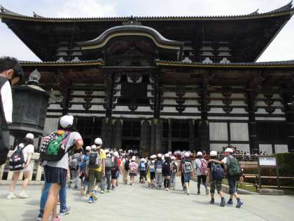 奈良の大仏を見たり、若草山から春日大社、飛火野まで歩いて、オリエンテーリングをしました。