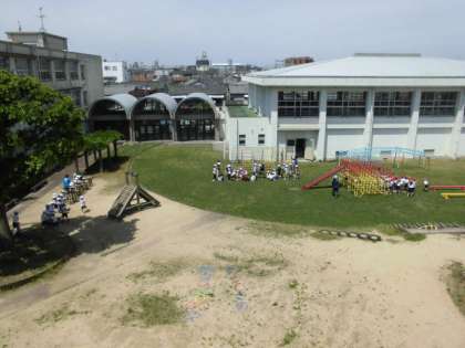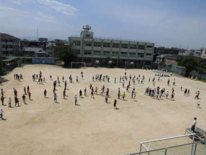 今日から、15分休みを20分に延長して、業間体育が始まりました。「運動に親しみ、体力の向上を図る」「友達との輪を広げる」「異学年と交流する(4〜6年生)」など、いろいろなねらいをもって取り組んでいます。