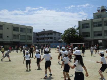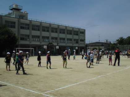 今日から15分休みを利用して、業間体育(ドッジボール大会)をしています。今日は5年生と6年生が対戦相手だったので、厳しい試合になりました。「先生、怖い〜。」と言ってコートを所狭しと逃げ回っている人もいましたが、自分のところにボールが飛んでくると、がんばってボールから目を離さず、間一髪のところでよけていました。また、相手チームの投げたボールを取った後は、えい!やっ!と気合を込めて、果敢に相手目がけて投げ込んでいました。バシッと相手チームの人を当てることができると、「おっしゃ!」と全身で喜びを表していました。