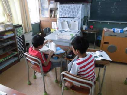 今国語の学習では、『自然のかくし絵』を学習しています。虫は、周りの景色に色を似せて、敵から身を隠し、自分を守っています。この色のことを保護色と言います。この保護色について、読み深めています。