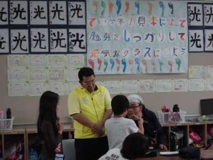 赤おにさんからのお話の後、友達同士の食べさせ合い体験をしました。人に食べさせてもらうってどんな気持ち?どのようにしたら相手は食べやすくなるかな?そのようなことを体験を通して学んでいきました。その後、友達との食べさせ合い体験の時に感じたことをいかしながら、赤おにさんへの食事介助体験をしました。1年生の時から交流給食をしているので、さすが4年生です。上手に介助していました。