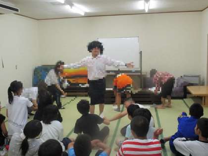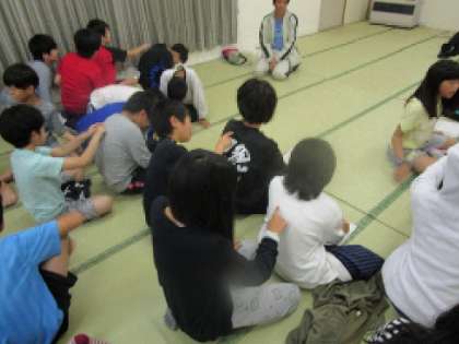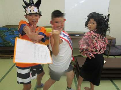 ご飯を食べ終わって、少し休憩をはさみ、一日目最後の行事「夜のつどい」の始まりです。この日のために考えた班対抗の遊びや係の子たちの出し物、そして先生までサプライズで登場してくれて、いや〜本当にすごく盛り上がりました!!!!楽しい活動になりました(^^♪