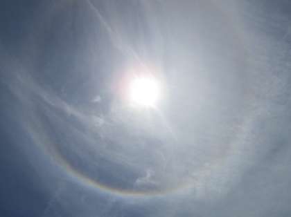 大きく腕をあげ、上空を見上げて投げようとしたとき…空に大きくて丸い虹がかかっていることに気付きました!少しの間みんなで空を見上げ、きらきら光る虹を眺めました!「虹が応援してくれているんだね。」と、虹の力を借りて、とても遠くまでボールを投げることができました!