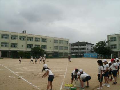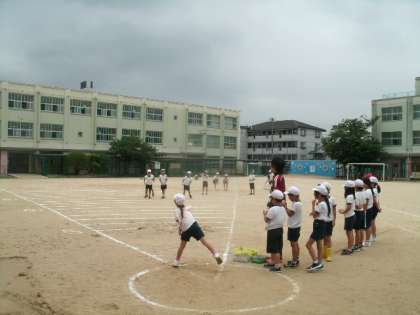 昨日の雨でソフトボール投げの実施が危ぶまれましたが、運動場の端の方にぬかるみがあるだけで、無事実施することができました。