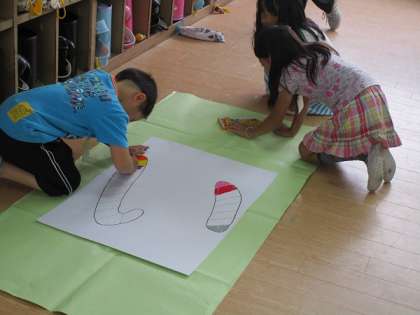 東小フェスティバルに向けて、めあての文字に色塗りをしました!はみ出さないように気を付けながら、友達と協力してきれいな色を塗ることができました!東小フェスティバル当日、1年生は5,6年生のお店のお手伝いをします。ぜひ足をお運びください!