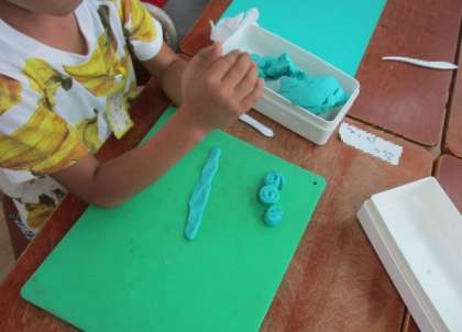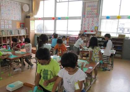 1組では、図工の時間にあぶらねんどを使いました!ねんどをのばしてひもをつくる練習をしてから、ひもの形を使って自分なりに素敵な作品を表現しました。最初は一人ひとりが自分の作品を作っていたのですが、だんだんおとなりのお友だち、班のお友だち、と広がり、みんなで大きな作品を作りました!みんなのアイデアが詰まった、とても素敵な作品になりました!