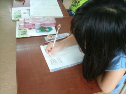 「14個のゼリーを1人3個ずつ分けると、何人に分けることができますか?」という問題が示されると、子ども達は、これまでの学習で習った九九や図を使って解いていきました。「あれ〜、14なんて3の段の九九にはないぞ。」「3個ずつくくっていくと4つのまとまりができたけど、2個残ってしまったぞ。」