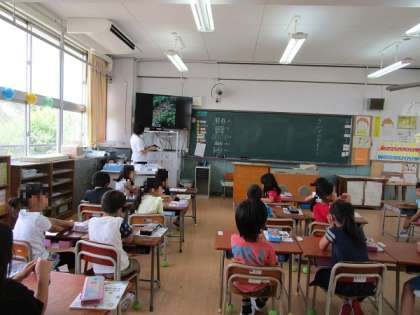 以前校区探検をしたときに班で撮影した写真を、生活の時間にみんなで見ました!