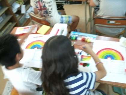 学習後の感想を見ると、「いろんな色を使うことができて楽しかった。」「いろいろな色を混ぜると、すごい色ができた。」など、色の不思議と色塗りの楽しさを感じているようでした。
