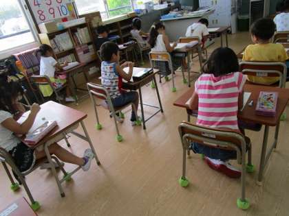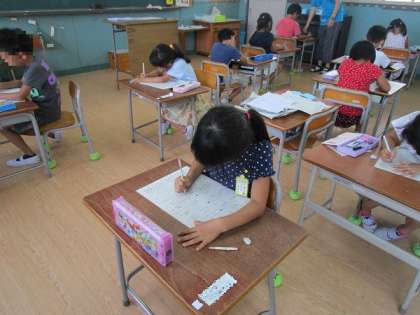 矢田東小学校では、学期に一度漢字と算数の検定が行われます。今回1年生はまだ漢字を習っていないため、ひらがなの検定でした。