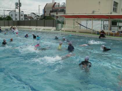 (写真は4年生の着衣泳の様子です。)