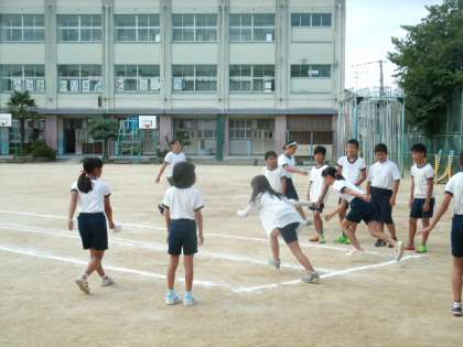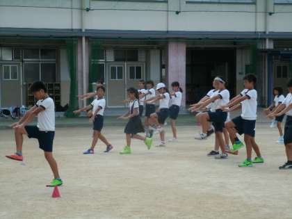 5年生が林間学習に出発した後、運動場では、8月3日(木)に長居スタジアムで行われるスポーツ交流大会に向けての練習が始まりました。