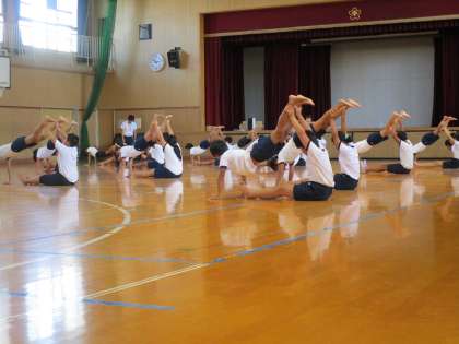 今日は組体操の一人技と二人技の練習をしました。下の土台の子は、持ち上げる時の重さをぐっとこらえ、上にのる子は高さの恐怖心を乗り越えなければなりません。お互いの気持ちを理解し合い、互いに協力し合いながらがんばってほしいものです。まだまだ始まったばかり、暑さに負けずがんばっていきましょう!!