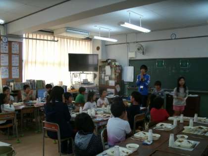 今日の給食の時間、朝鮮子ども会の柳ソンセンニムが2組にやってきて、いっしょに給食を食べました。