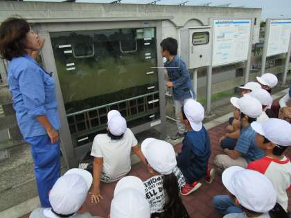 そのあとは施設内に入り、汚い水からきれいな水に変えたり、