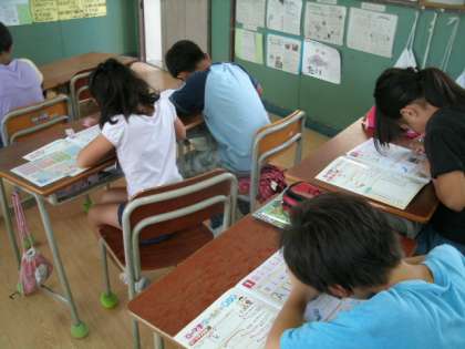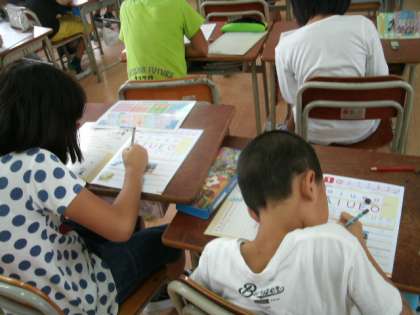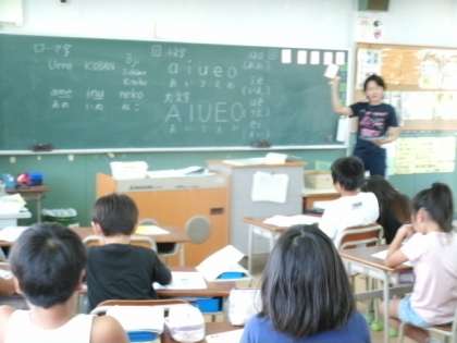 昨日からローマ字の学習が始まりました。1学期から英語のモジュール学習に取り組み、2学期からは毎週2回実施しています。ですから、子ども達はアルファベットにもずいぶん慣れていて、興味を持って学習に取り組んでいました。また、か行を習う時、「あ行にkを付けます。」と担任から教えてもらうと、「キロメートルのkや!」と、ローマ字の学習に算数を結び付けている子もいました。