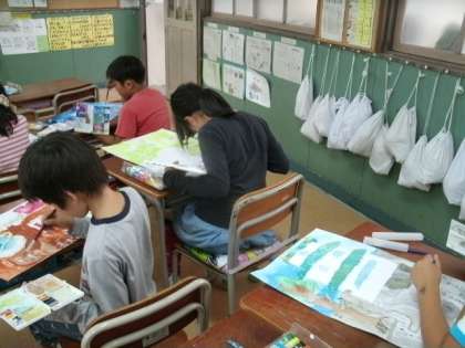 図工では、先日お伝えしましたが、心に残ったうれしかったことをテーマに絵を描いています。今は、下絵も終わり、色塗りを始めています。色塗りでは、いろいろな色を使い、点々塗りで塗っています。点々でぬっていくと、とても作品の雰囲気が出てきますが、時間がかかり根気がいります。でも、子ども達を見ていると、細かいところもていねいに塗っていました。一人一人のうれしかったな〜という気持ちが伝わってくる作品に仕上がりそうです。