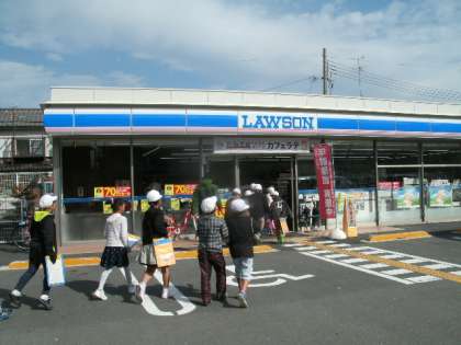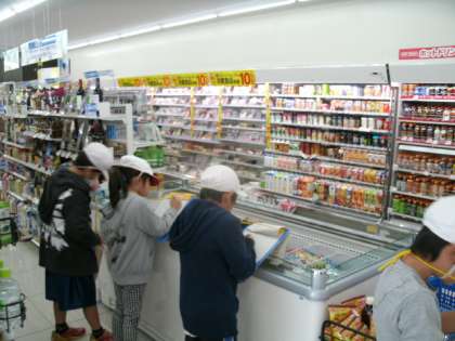 先日のスーパーへの社会見学に引き続き、今日はコンビニエンスストアへ社会見学に行きました。コンビニは、いつ行ってもお店が開いていて、たくさんの商品が置かれているとても便利なお店です。さて、お客さんがたくさん来てくれるように、どんな工夫がされているか、グループごとに調査しました。
