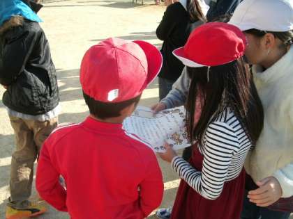 今日の児童集会では、先週の全校遠足でしたオリエンテーリングの成績発表と表彰式をしました。